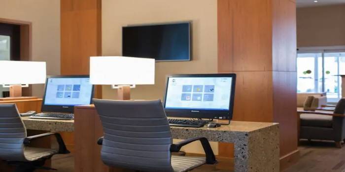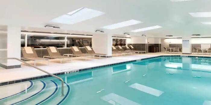 There's a cafe/bar and a 24/7 market for casual meals and grab-and-go snacks. Other amenities include an indoor pool and a 24-hour exercise room, plus 8,500 sq. ft of meeting space. Pets are accepted for a fee. Valet parking is available or a surcharge.