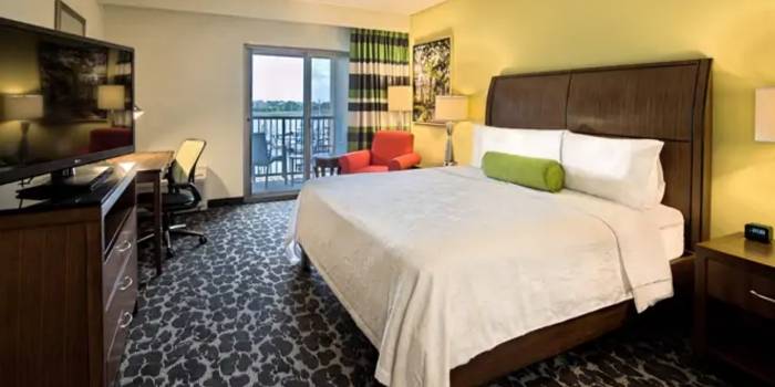 Each guest room and suite features a Serta Suite Dreams® bed, and modern amenities including complimentary WiFi, ergonomic desk, 42-inch LCD TV, Keurig® coffee and tea maker, mini refrigerator and microwave. Enjoy a cooked-to-order breakfast in the Garden Grille & Bar and grab a snack at any time from the 24-hour Pavilion Pantry®. Work out in the complimentary 24 -hour fitness center and swim in the outdoor seasonal pool overlooking the water.