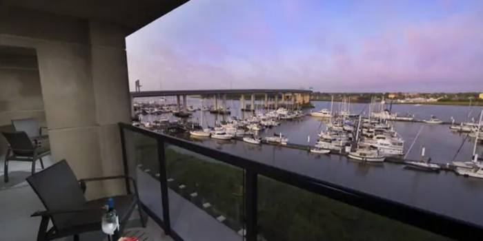 Unwind in a spectacular waterfront setting overlooking the Ashley Marina that boasts panoramic views and offering beer, wine and local flavors Tuesday-Friday, 4pm-7pm*. Hold an event at this Charleston, SC hotel with three meeting spaces, on-site catering and a complimentary 24-hour business center.